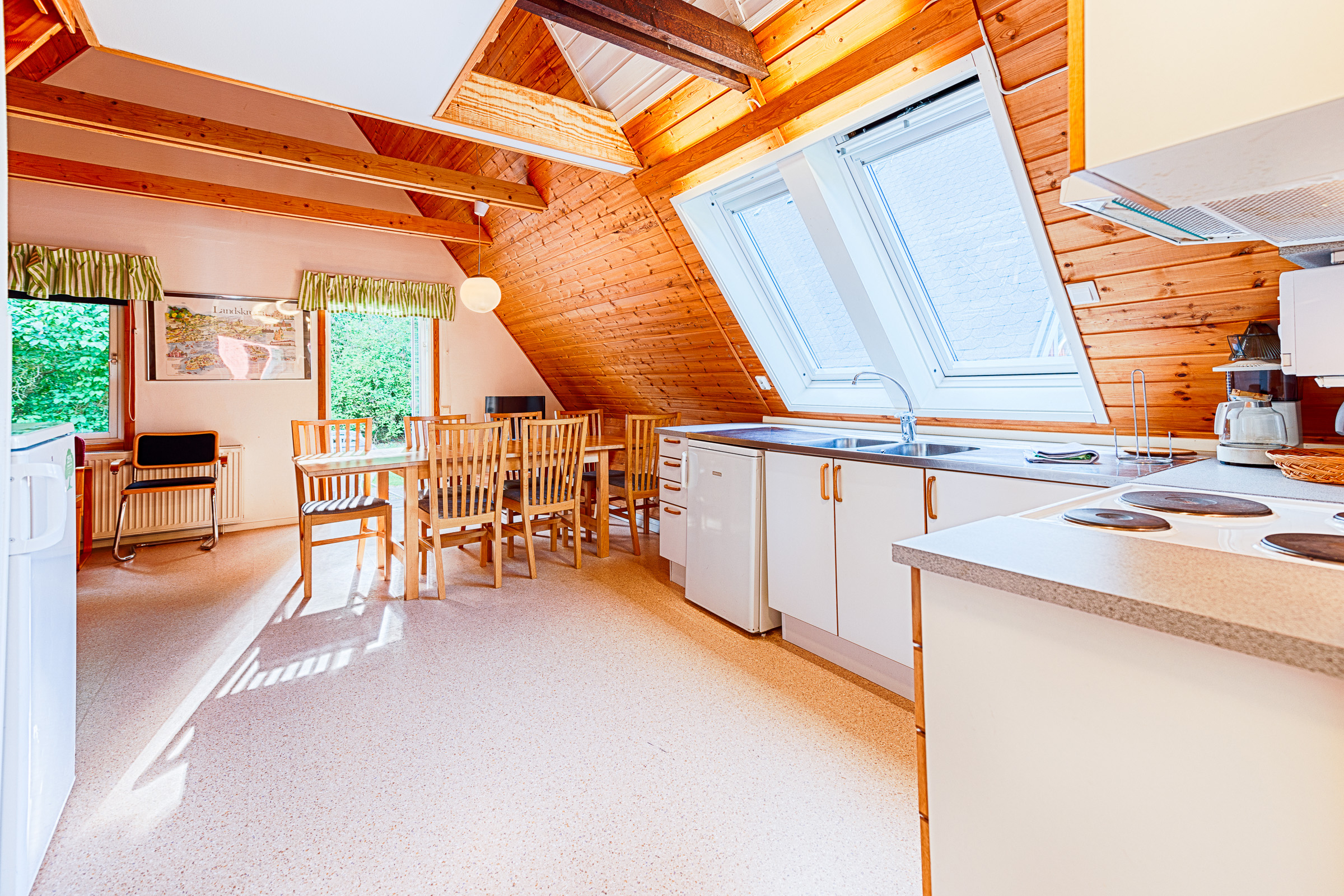 I köket finns kyl, frysfack, spis med ugn, mikrougn, kaffebryggare, brödrost, vattenkokare och porslin för sex personer. Stugan har TV och trådlös Internetuppkoppling. Det finns också en generös trädgård till varje hus med utemöbler för 7 personer.