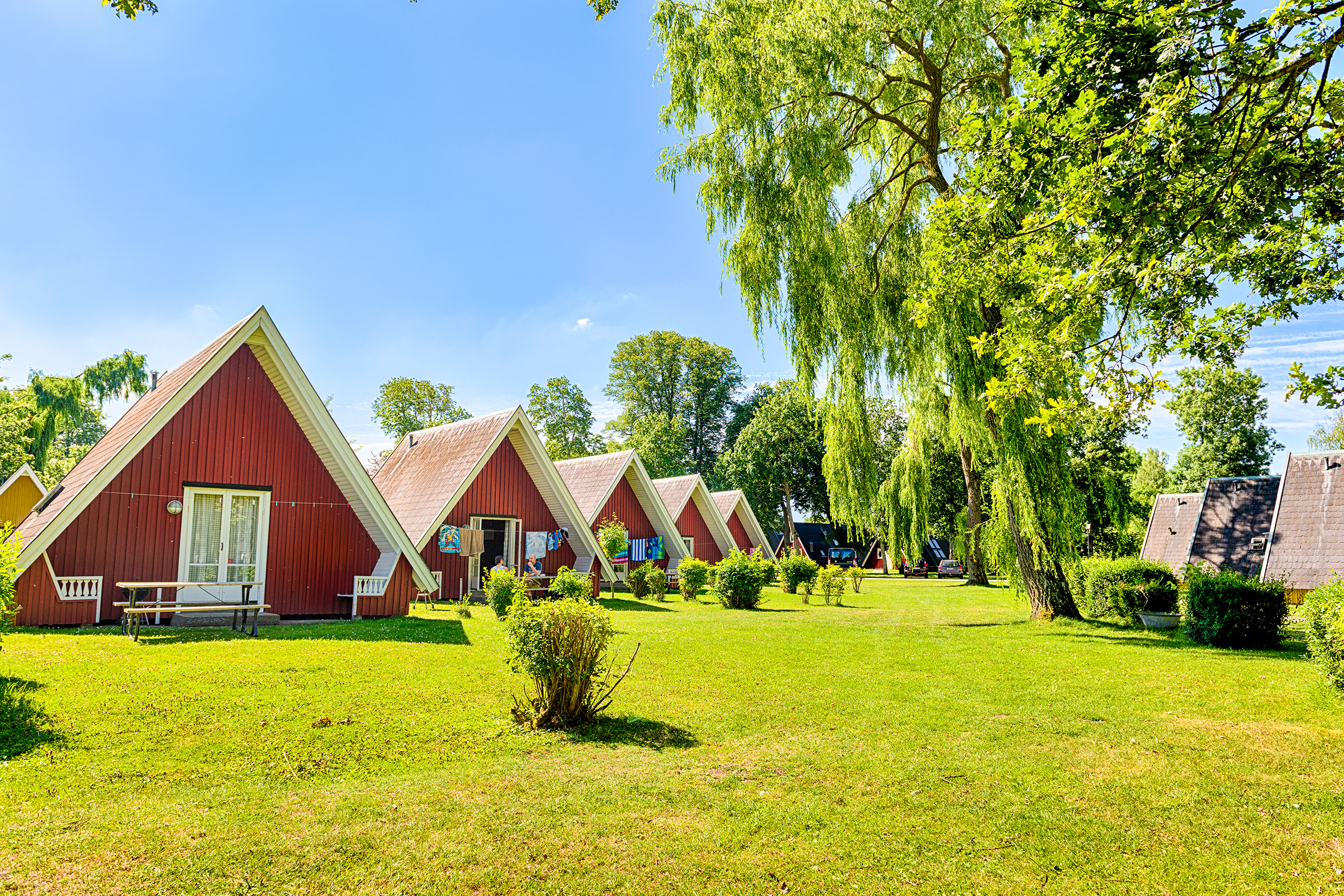 Dusch och bastu finns i central servicebyggnad precis intill. Duschar och toaletter är nyrenoverade. Det finns också familjerum där ni kan låsa om er och ha exklusiv tillgång till dusch och toalett. Detta ingår i stughyran.